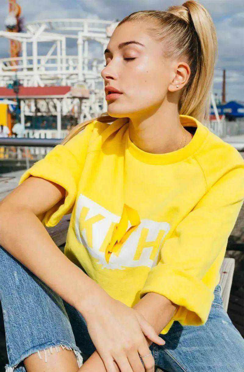 这个也属于柠檬黄,可能人家是比伯的女友,所以才穿得好看吧不要轻易尝试哈,不过白皮可以一试,比上面的黄更加黄一点,不偏青,所以荧光感不重,白皮穿会很惊艳~