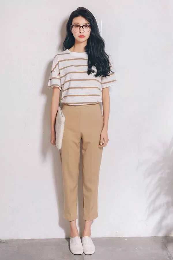 特别是烟管裤,很多烟管裤都用了卡其色,因为烟管裤就像是女性的西装裤一样,所以用色上比较OL。