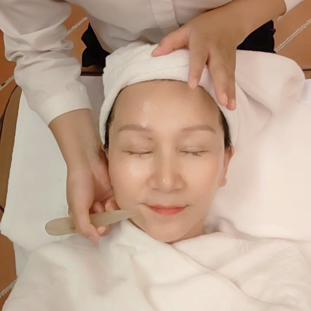 ·然后用拨筋棒对面部穴位进行排毒。特别是眼部的非常细致,去除结节、明亮双眼,熬夜人士的福音。