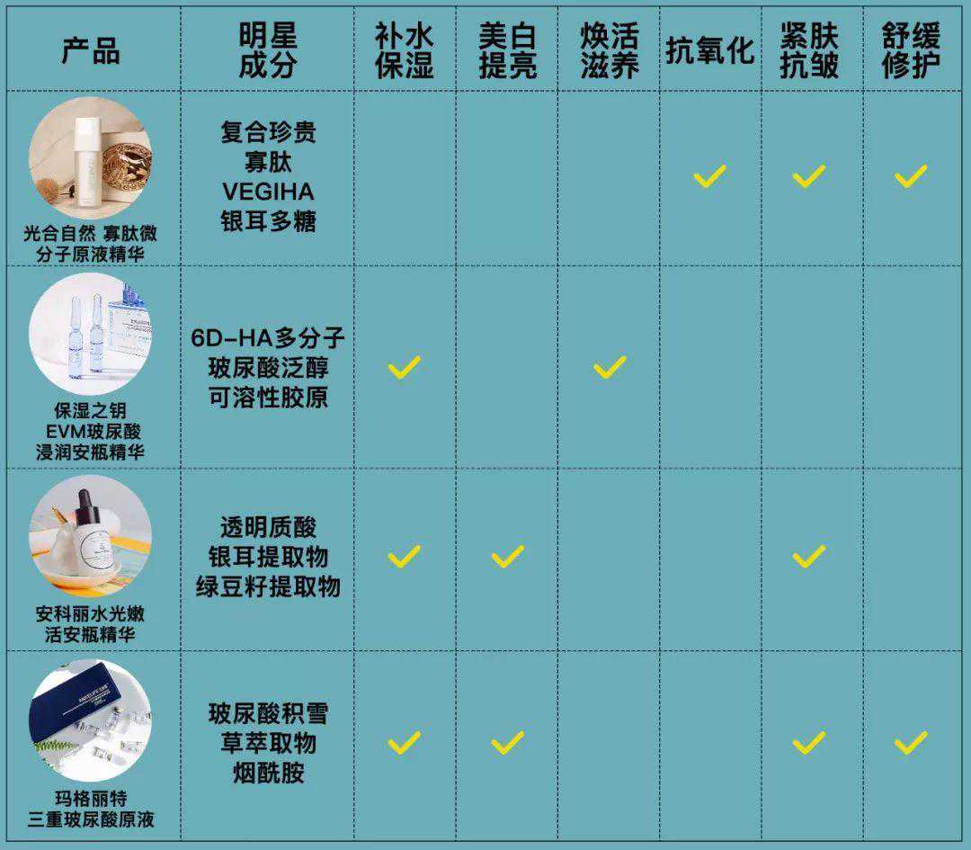 除了玻尿酸,其他明星成分也在帮你的肌肤变美。