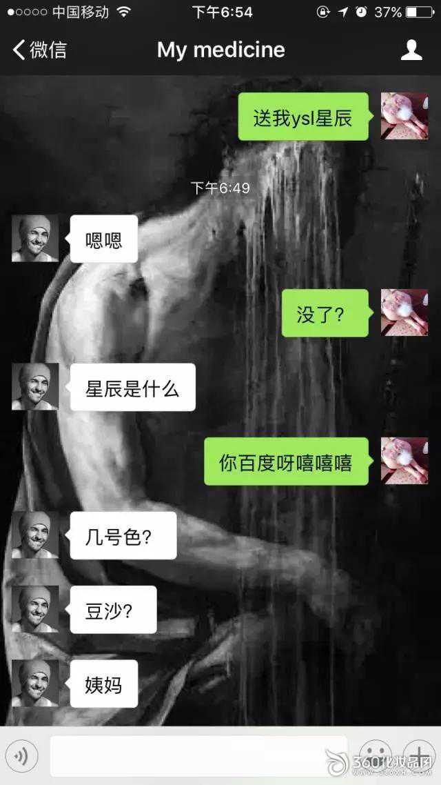我们先来回顾一下起源。事情是这样子滴,刚开始,YSL推出了星辰系列,于是有不少心动的姑娘发微信问男朋友愿不愿意送一只,答案有搞笑逗逼的,也有伤心气愤的。后来,某些公众大号就整理了这些聊天记录,各位宝宝发图的意愿,大概就是“晒我家男盆友”的。。。