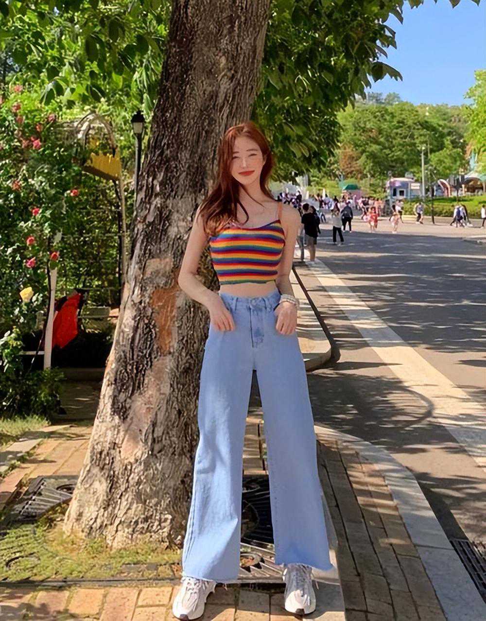 如果上半身苗条,可以尝试短上衣+直筒裤/阔腿裤+老爹鞋的组合,这对于小个子来说简直就是显高神器,1米5也能轻松穿出1米7的既视感。
