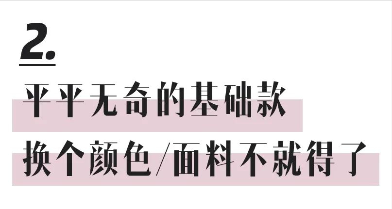 对于基础款来说,除了款式的选择,想要改变其平平无奇的特性,可以在材质面料、颜色上稍作改变,便能让基础款的风格焕然一新。