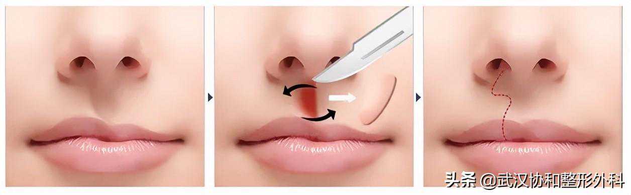 手术方式有两种,“梭形切除法”和“横纵棱形切除法”,基本是在局部麻醉下,在上下唇红唇皮肤与粘膜交界处,视唇厚程度梭形或锯齿形适当切除多余的口腔粘膜和肌肉,然后直接拉拢缝合切口,使厚唇改薄,该手术切口疤痕隐蔽在口内,整形效果可永久持续。