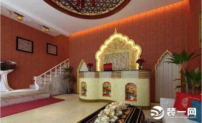 神秘的印度风,拱形花边门洞是典型的印度造型,陪以简洁的白色和沉稳的咖啡色,把新印度风格展现的淋漓尽致。