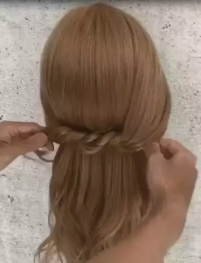 STEP2:两根发束在中间交叉。