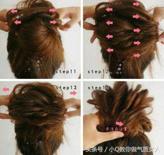 4、把后面的头发按图片箭头的方向拉成花的形状,让整个花苞圆润有型
