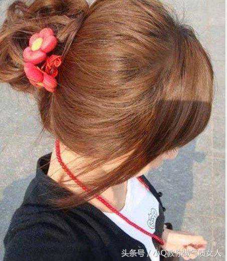 6、最后在配上可爱的发饰就可以完美出街咯。清新蓬松花苞头,你学会了吗?