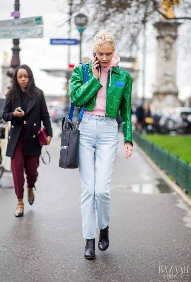 像Kaia这种稍夸张的廓形外套搭配妈妈裤也是拗造型的一把好手~这种复古别致的小外套即使随便一搭也能轻松出彩!