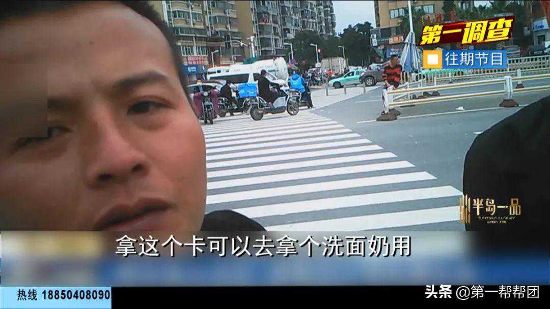 而还没等记者靠近,一名男子就迅速走了过来,并且向记者分发了一张小卡片,称可凭此卡领取一份免费的洗面奶。