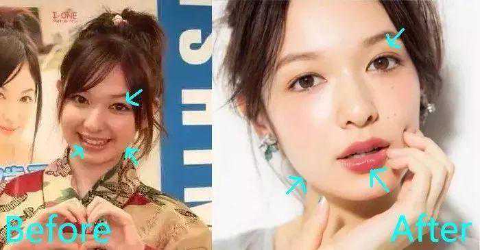 另外她的脸变得更加小巧,下颌的轮廓清晰了很多。原本有些凸嘴的现象也改善了,唇形更为精巧。