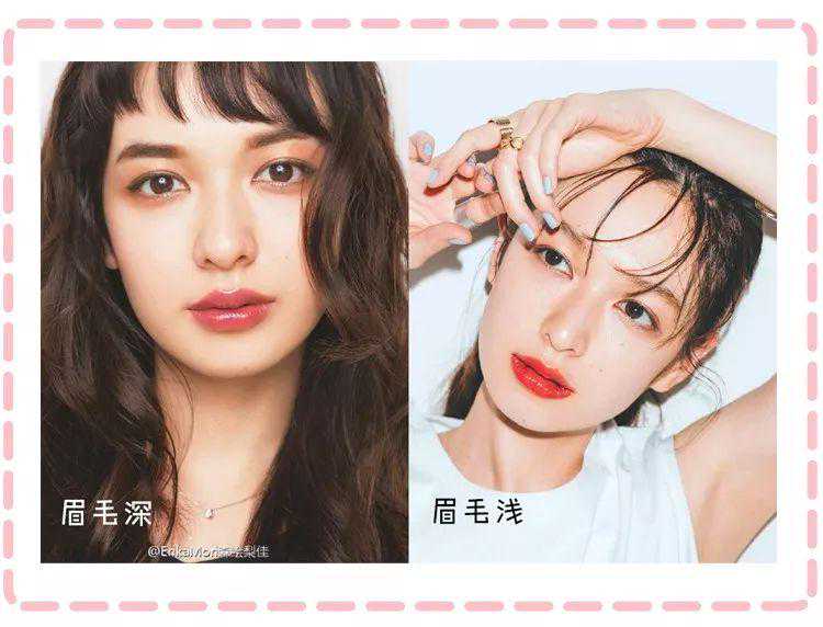 和韩式一字眉,欧美大挑眉不同,费洛蒙妆的眉毛通常是很自然的野生眉。这种眉形不需要很重的线条感,弱化了眉峰,眉尾轻微下垂,看起来就像没化妆一样。