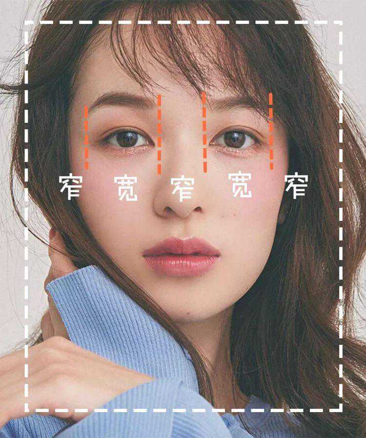 我们看一下森绘梨佳的五眼比例,她的眼睛呢其实是偏细长类型的,这种眼型其实容易看起来比较成熟凌厉。