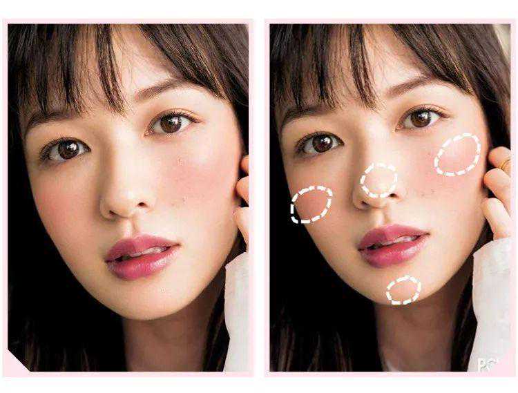 费洛蒙妆容的重点就是腮红,淡淡的红晕好像宿醉后的羞涩感,是这几年来日本女性流行的妆容特点之一。
