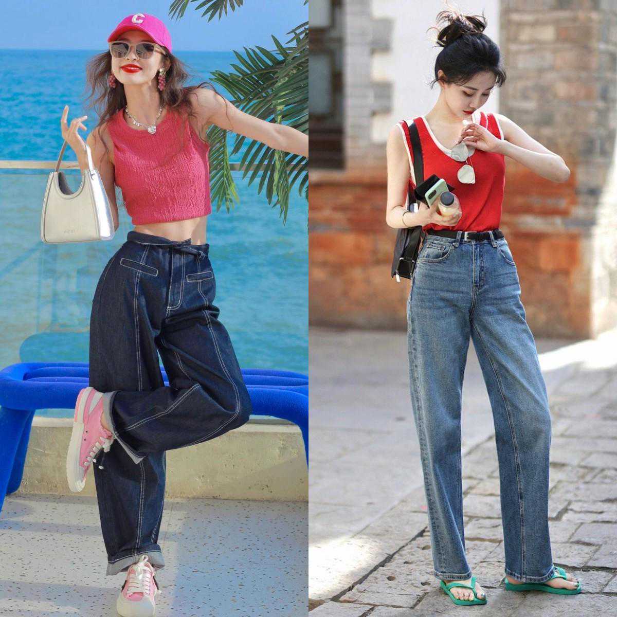 对于身材条件并不优越的姐妹们来说,搭配时如何改善身材短板才是最先要考虑的问题。如果你属于腿粗、胯宽的梨形身材,那就可以试试上紧下松的穿法,用修身的无袖上衣搭配宽松的下装,营造出“松紧”反差,看起来会更加显瘦。
