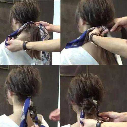 当然,佩戴在头后方,也是需要一些技巧的,上图中的四个步骤中,大家要注意第二步,不然会发带缠绕的会不太紧致,头发就不好看了。