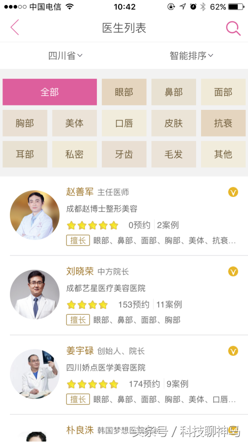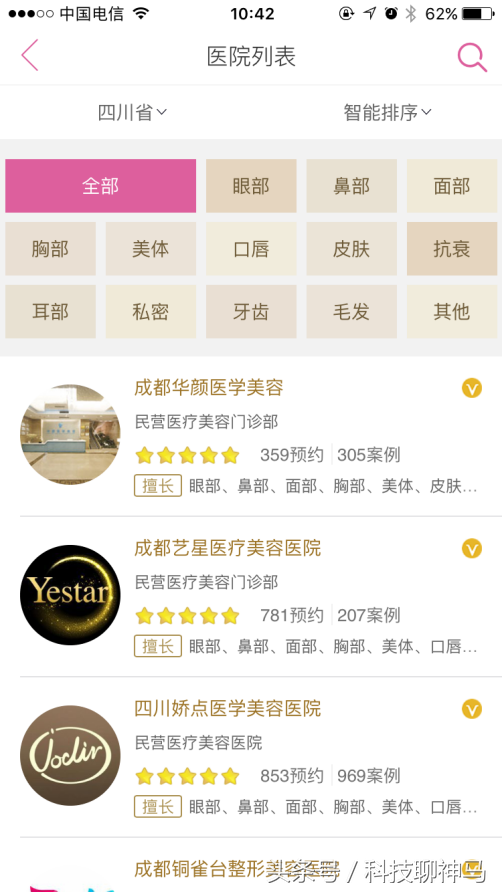 可以这样说,非知名医生、知名医院,都不会选择合作。比如成都地区,我们就只会选择像铜雀台、米兰柏羽、艺星等知名的机构进行合作。我们还有着资深的咨询团队,都是在整形医院超过5年以上的美学设计顾问。”