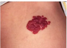这种胎记的外观呈淡红、暗红或紫红色,较为平坦,也是一种很常见的红色胎记。它是由于毛细血管扩张异常引起的,最常见于头面部和颈部,身体和四肢也可能出现。