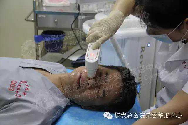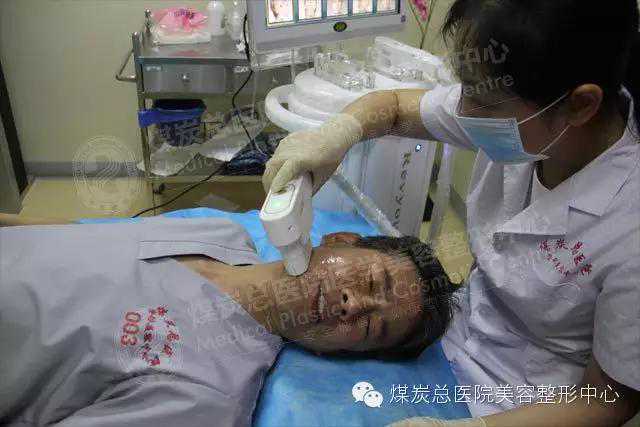 10分钟后,赵主任平躺在治疗床上,余医生开始为赵主任做治疗,治疗是从单侧下面部到中面部再到眼周、额头进行的,全脸治疗时间40分钟。