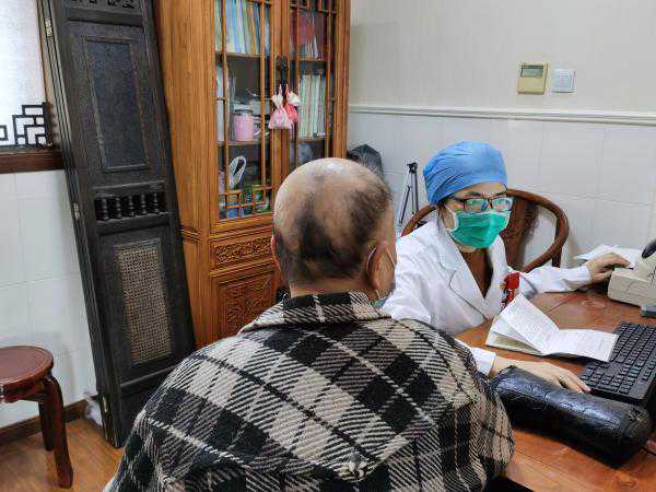 诊间里,中医科护士黄婷婷捏着梅花针,正在给患者刘先生枕后的一块块斑秃区域叩刺敲击,不一会儿就看见有小血点渗出。擦拭干净后,医生再用第二个手法——头皮针,围绕斑秃区域扎针。“感觉如何?”记者问刘先生。“有点胀痛和酸麻,但是可以忍受。”刘先生平时工作生活在普陀区,“为了来治疗,我每次路上要花一个半小时,但感觉还是很值得,因为有效果。”3个月前,刘先生突然发现斑秃,在亲友推荐下慕名赶来诊疗,“现在露出的头皮已经小一点了,除了用手法治疗,还有外用药、口服药,系统治疗让人很安心。”