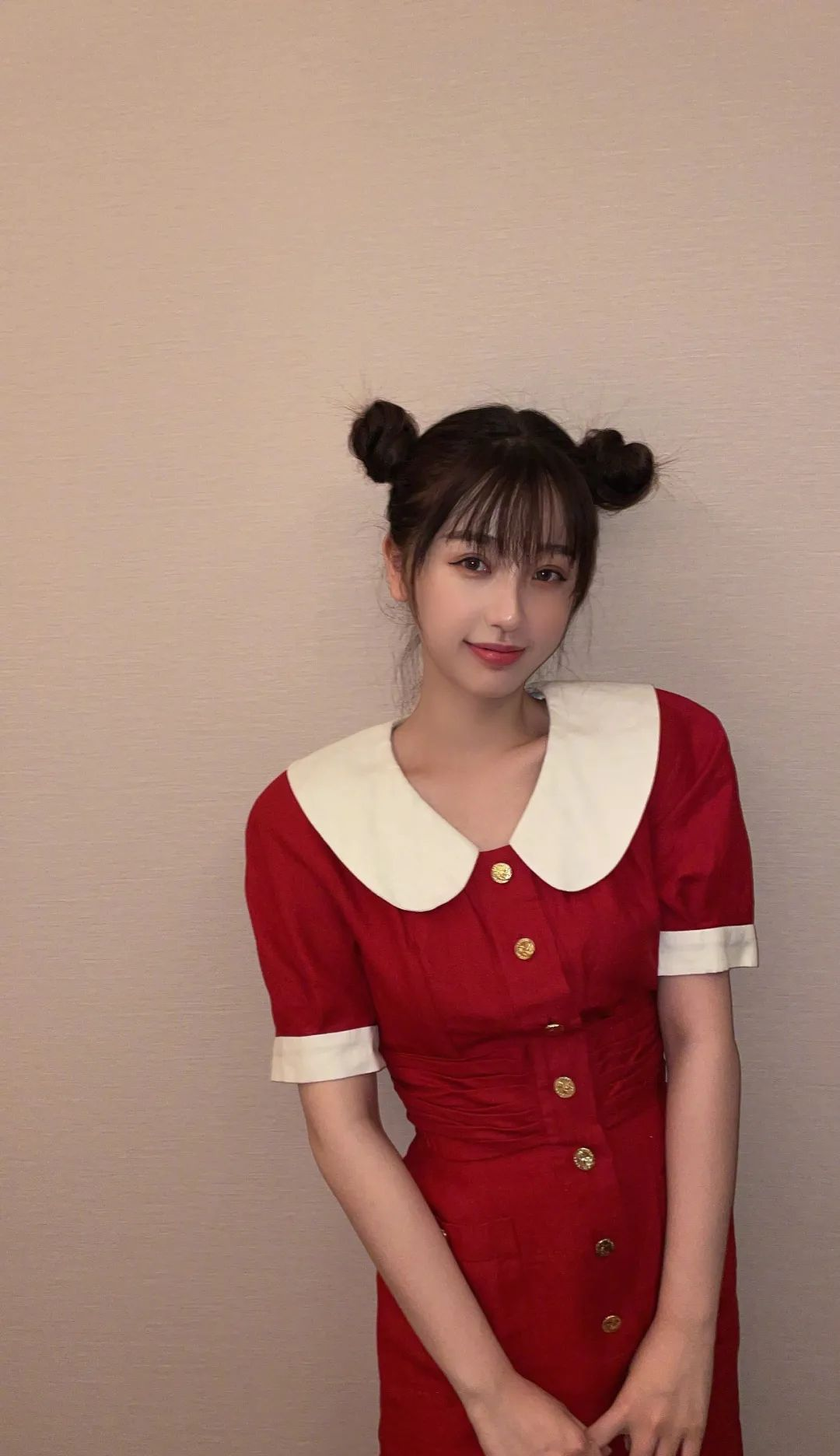 像虞书欣就深得丸子头精髓,扎的时候把头顶和后脑勺都用手拉蓬松,显脸小的同时可爱值拉满。
