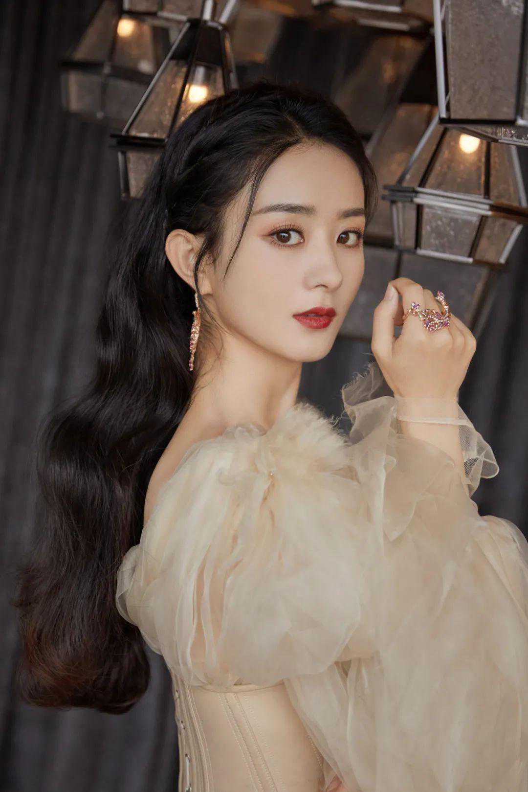 章若楠这种就是比较标准的半扎发,扎完后记得用手拉一拉头顶的头发,打造头包脸效果更显脸小哦。