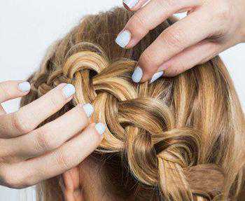 第七步:再用手将编好的蝎子辫拉成扁平的形状,会显得自然而优雅有。如图所示。