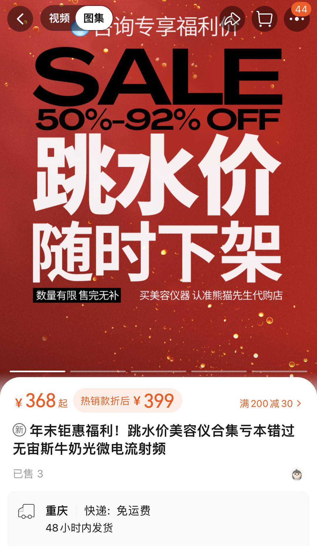 电商平台发布美容仪跳水价广告