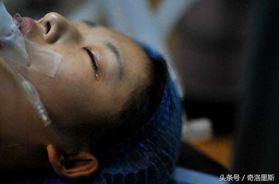 麻醉开始失效,菲菲忍痛流泪。