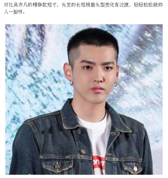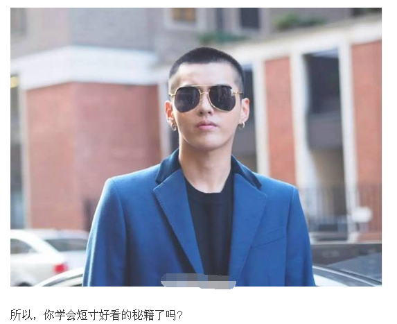 不过,寸头的他却变了另一个样子。偏椭圆的脸型,M型发际线,留了寸头效果不是很好。