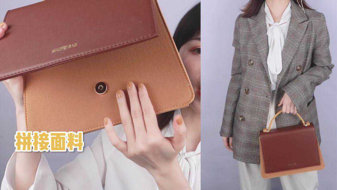 这个包包学生党和上班背都合适,深棕和浅棕色撞色,手提的部分是黄色的,让包包看起来不沉闷。