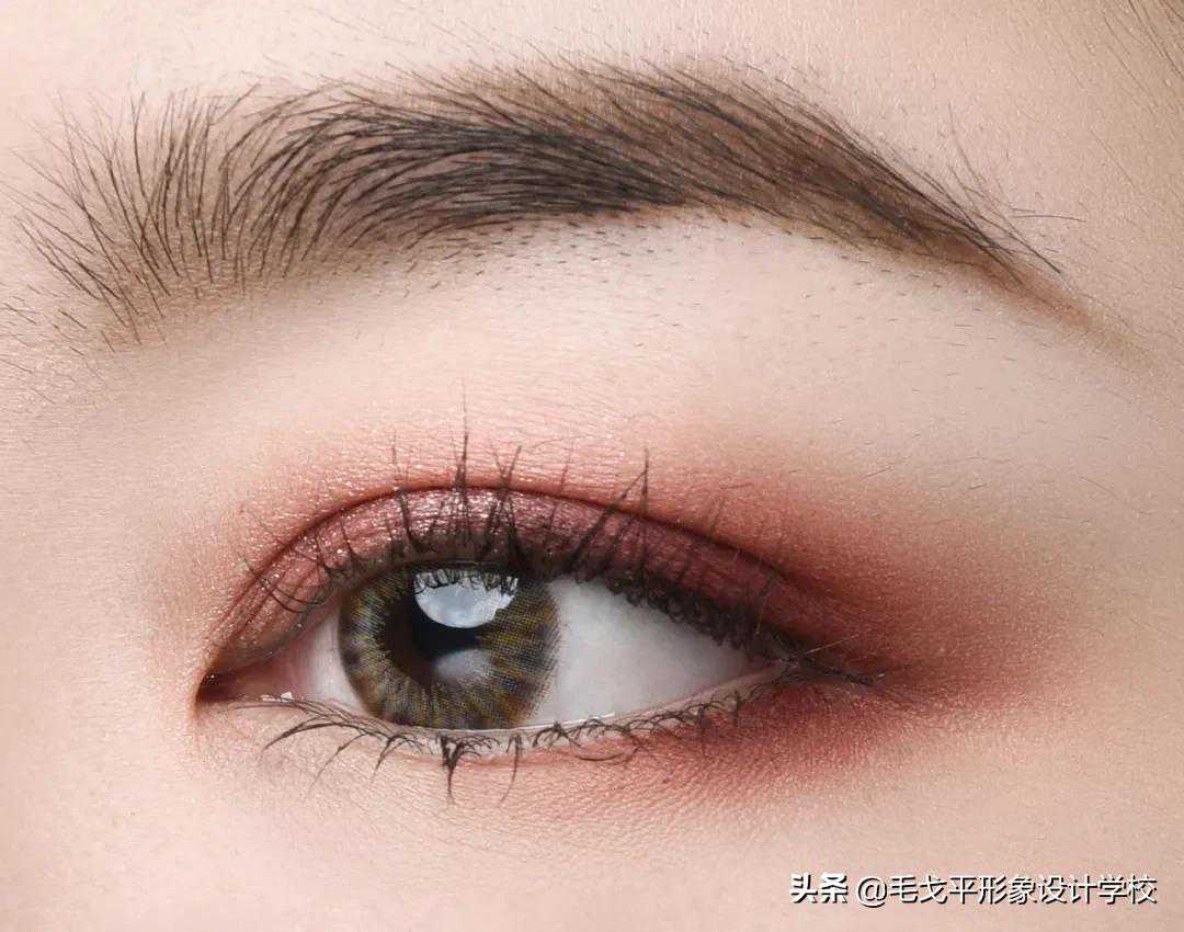 眼影可以选择前移式的画法,眼头深、眼尾浅,可以起到拉近两眼间距的作用!