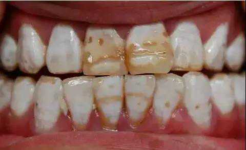 氟斑牙是由于饮用含氟量过高的水或者使用过量的含氟牙膏导致的。这是一种在牙齿中慢性氟中毒的表现,若不及时治疗还可能会患氟骨症。