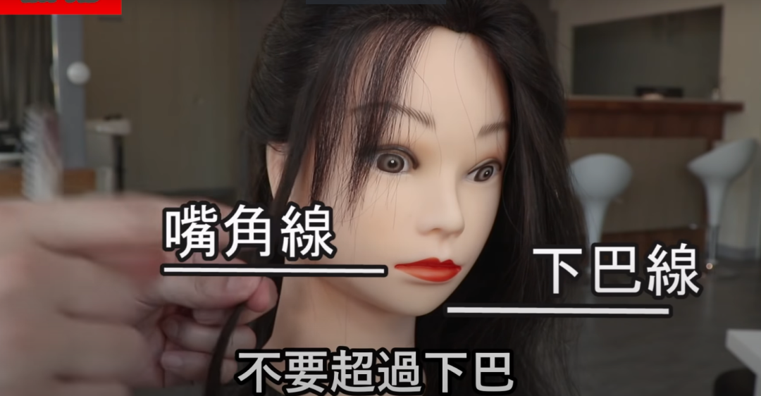 记得随时跟着自己的脸型和需求调整碎发的长度,你认为长度或发量不足以做更多的造型,那么请继续从这缕头发中挑出更多备用,为了更加自然,发型师比较推荐用刮眉刀操作,按照↓下图的手法,斜斜地往下削薄。