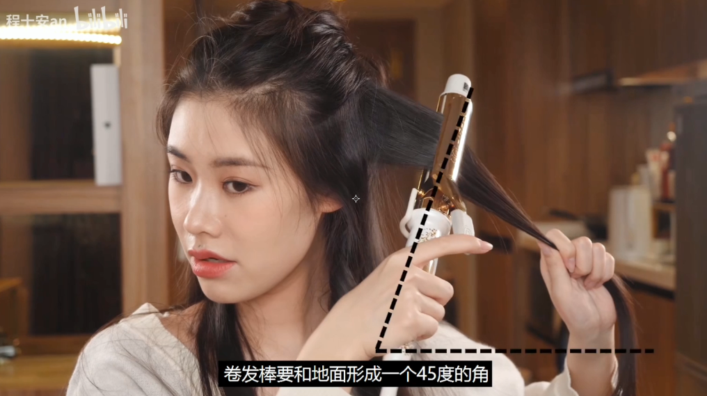 不过要注意要将卷发棒45度角斜下来卷,这样会比起垂直90度卷的卷度更大一些,自然也就有嘭嘭弹弹的感觉了~