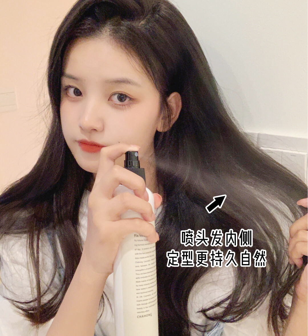 卷完头发后,再用定型喷雾往头发内侧喷一喷(喷外侧的头发会硬邦邦的,不好看),这样卷发能维持一天都不会掉。