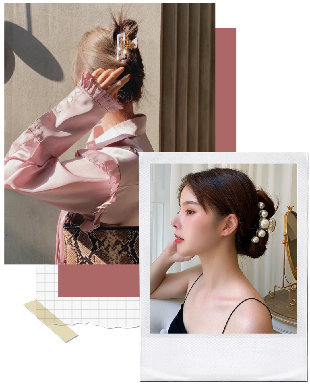觉得有点轻熟的话,也可以试着用抓夹来一个半扎发,优雅到不行,跟姐妹们在花园里喝下午茶这样扎就很应景了~
