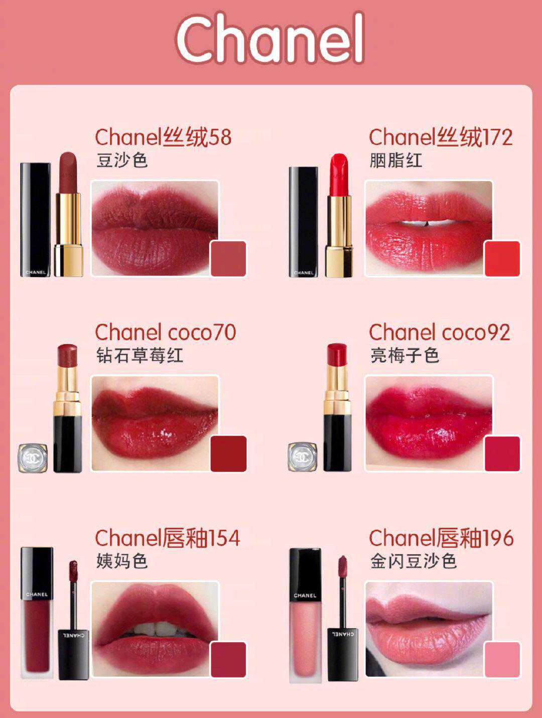 香奈儿的口红(lipsticks)主要包括:ROUGEALLURE系列、ROUGECOCOSHINE系列、ROUGEALLUREVELVET系列,高保湿高显色度,温润细腻,很滋润,适合秋冬干燥的天气使用。味道也是香奈儿家的代表香味——山茶花的气息清新优雅。
