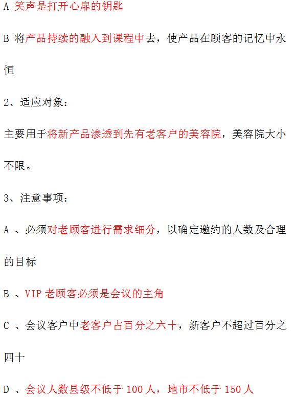 1、针对新客纳入,美容院在会议开始前5-7天用赛莱拉纳客宣传单张在周边的商场、高档住宅区、电