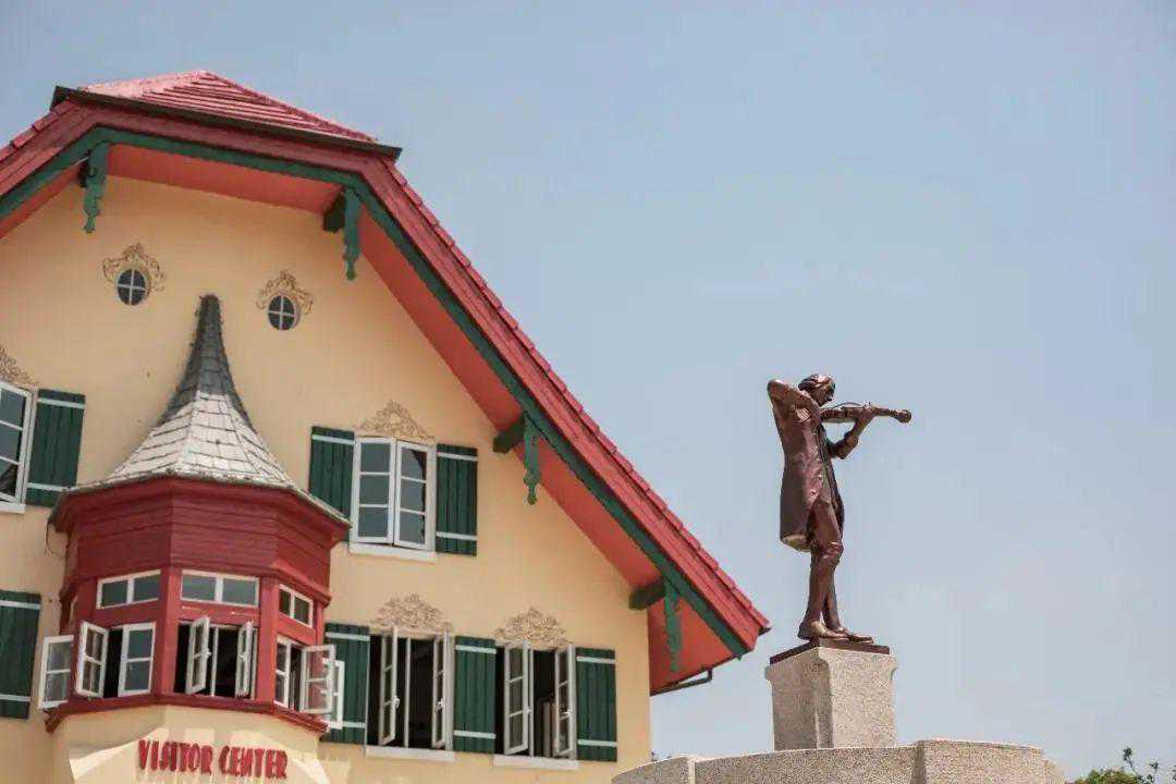 莫扎特音乐广场矗立着一座奥地利音乐家莫扎特的铜制塑像,广场内设置有围绕塑像的音乐喷泉表演,表演内容分为春之韵、夏之夜、秋之情、冬之梦四个华美篇章,以此来欢迎各位游客。
