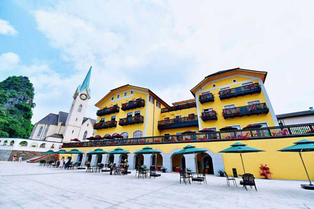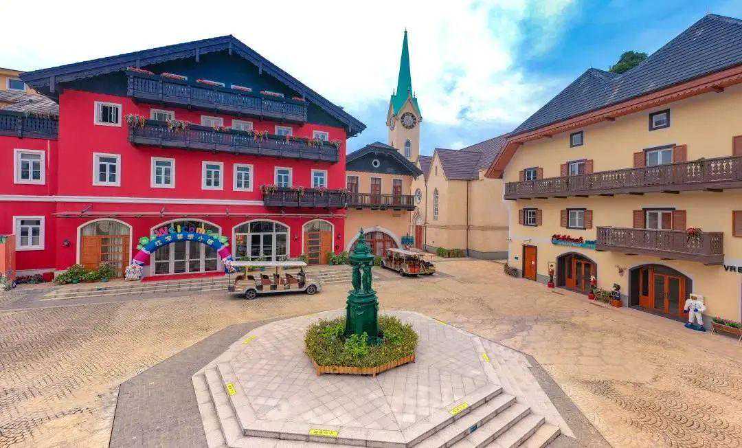 盐镇广场以哈尔施塔特小镇内的集市广场为原型打造,是当地居民的商业社交中心。“哈尔施塔特”从德语翻译过来即“盐城”的意思,故而取名为:“盐镇广场”。这座小镇以盐矿著称,有“盐矿宝地”之称,盐矿业的发达促进了当地经济的繁荣。优美的环境和发达的经济还吸引了众多浪漫的画家、艺术家、诗人和作曲家,从而留下了大量优质的建筑和艺术品遗迹。
