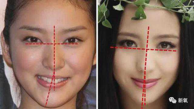 咱们先用原相机拍张素颜正面照;连接眼下两点做一条直线;再从眉中画出一条垂直于眼下直线的竖线;最后用一条线连接人中和嘴中。