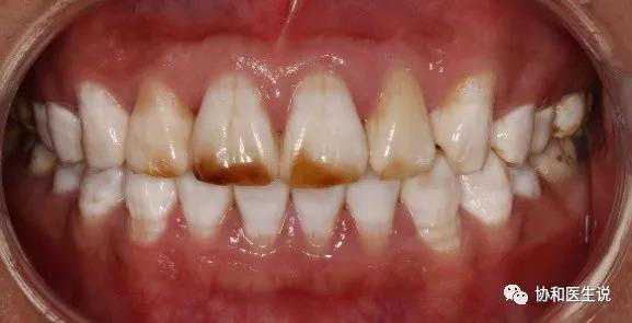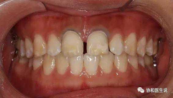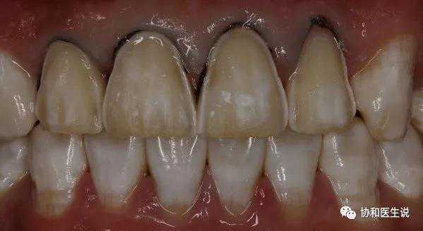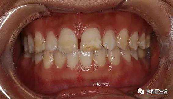 男,25岁,上前牙着色不美观,影响工作及交际形象,要求改善上前牙外观。患者有高氟地区生活史。