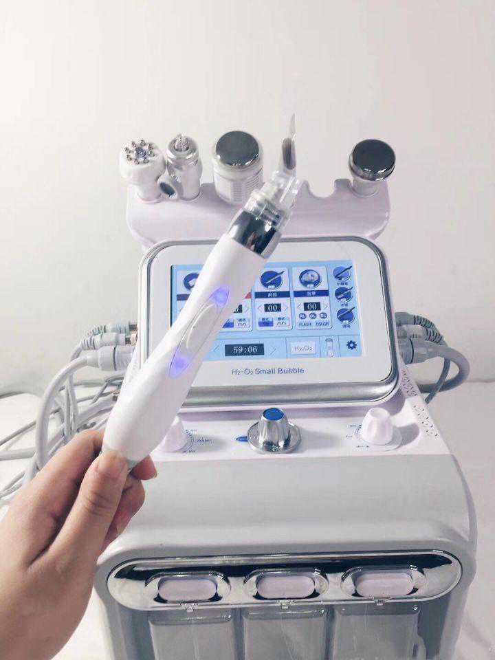小气泡设备看似复杂,其实就是一台多功能美容仪,把吸力笔、黑头铲、按摩棒、振动笔、超声笔、冰锤等糅合到一台设备上: