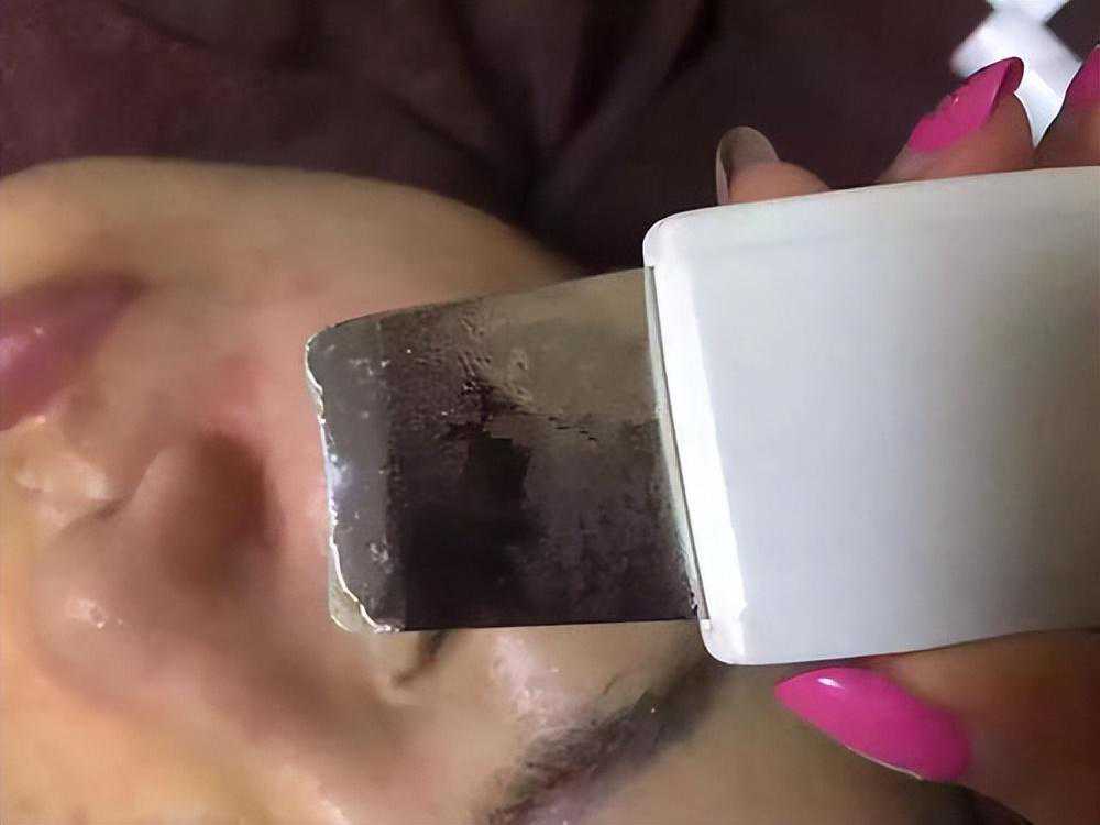 有些美容师习惯用黑头铲,因为黑头都已经浮出来了,黑头铲也可以轻松刮走:
