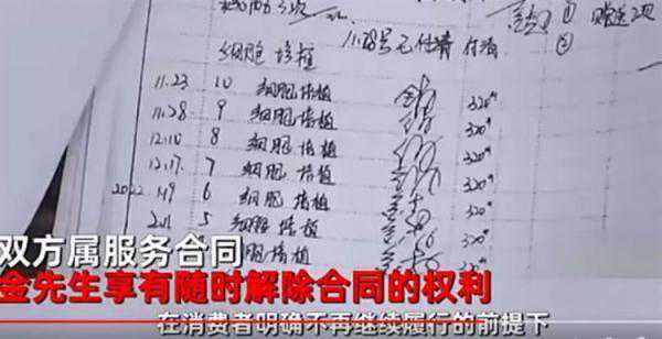 报道中说,金先生认为这属于“虚假宣传”,所以要求解除服务合同,索要剩余储值金额。说白了,就是金先生的家人,认为他上当受骗,他这才如梦初醒,来讨要说法。