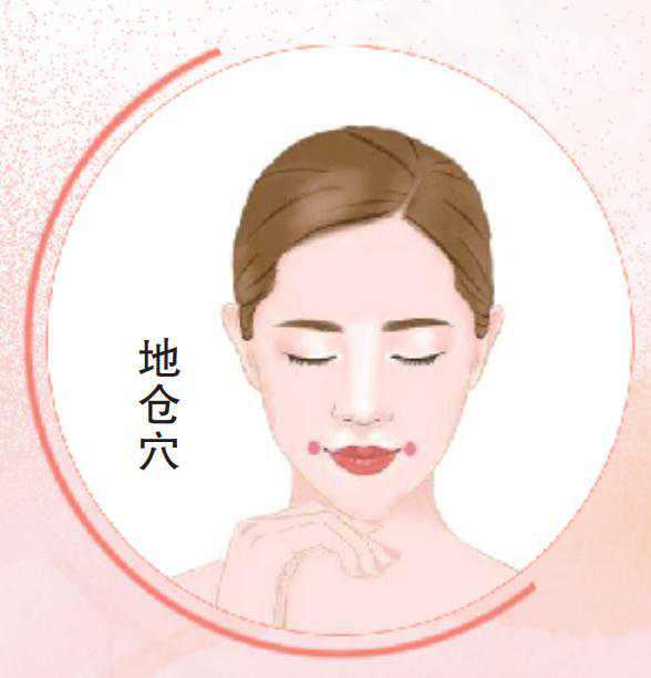 按揉口角旁开0.4寸,上直对瞳孔(地仓穴),有助消除口角皱纹,并且纠正眼口歪斜、流涎、面肌发麻或跳动等情况。