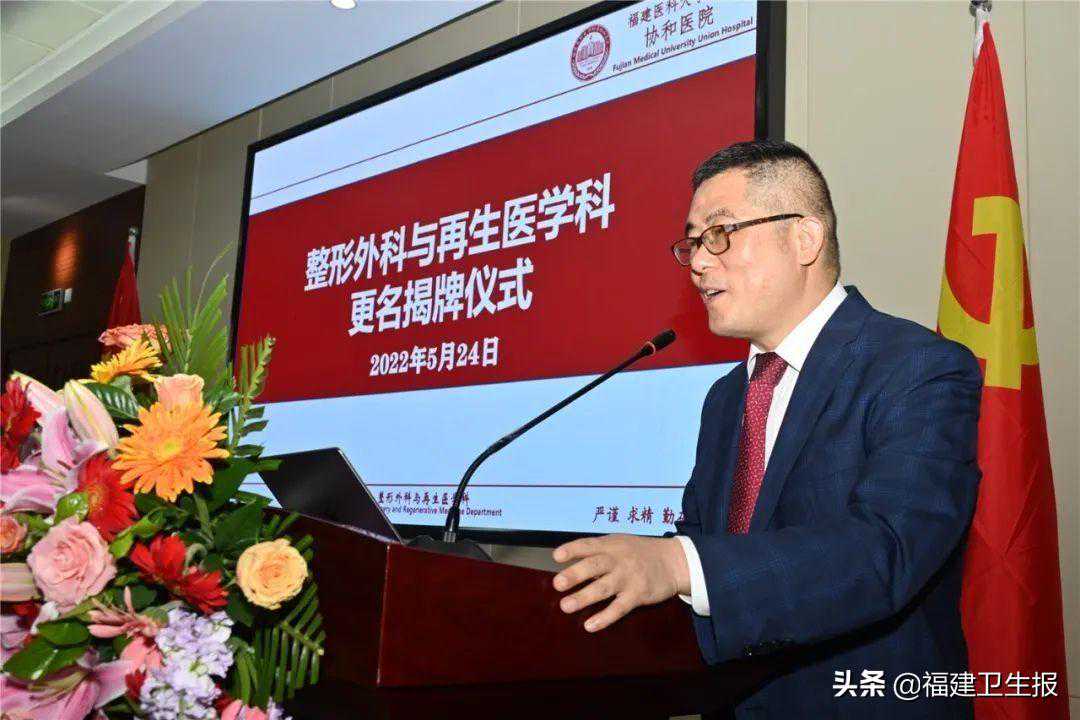 5月24日下午,福建医科大学附属协和医院整形外科与再生医学科更名揭牌仪式在医院1号楼举行。