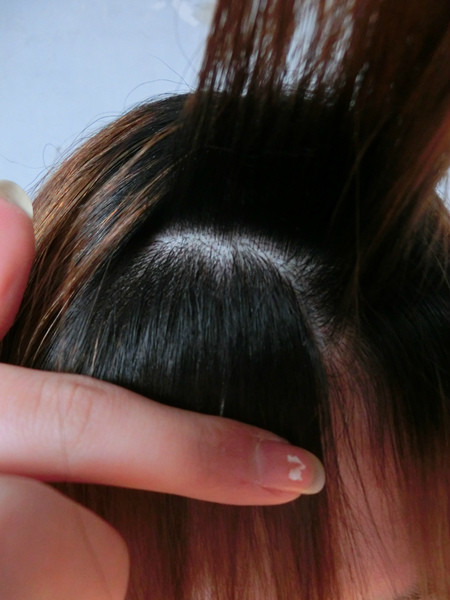 我们夹直板把前面那部分头发夹直,如果本身就是厚刘海的妹子,就可以直接把头发夹直,如果是中分的妹子请看后面我示范打薄刘海的步骤,因为我自己已经是薄刘海,所以好像没办法示范。不过后来我想了个办法,可以让大家怎么剪成薄刘海。我们先来夹直刘海吧。如下图,然后我们把头发分出来,刘海那部分留出来。