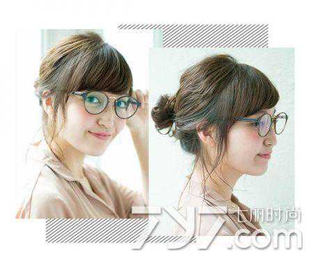 发型点评:厚重一九分斜刘海可以很好修饰脸型,两边松散发丝也能带来几分甜美感,加上脑后简约盘发搭配,更是清爽别致。